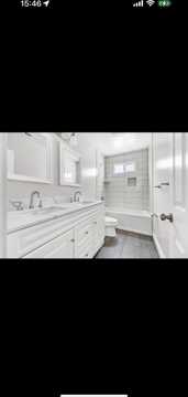 The room is located on the second floor or the house with a double vanity bathroom shared.