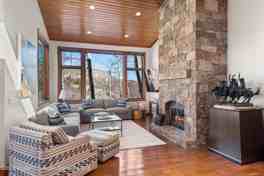 Nestled among beautiful aspen trees in the desirable lower Ridge Run area, this inviting mountain home offers a peaceful retreat just minutes from local amenities. The main level features two comfortable living areas with both wood-burning and gas fireplaces, along with a gourmet kitchen, breakfast bar, and adjacent dining area, perfect for everyday living or entertaining. The main living area opens to a spacious deck with serene mountain views and outdoor dining and seating. The primary suite is set on its own private level, offering a quiet escape with stunning views from the bed or adjacent sitting area. An additional guest primary suite and bathroom are located in a separate wing of the home, and include a twin day bed and trundle for overflow sleeping or lounging, and a private deck to take in the view. The lower level includes three above-grade bedrooms each with abundant natural light and mountain views, a tv room with game table and access to a deck with hot tub and outdoor seating. Additional highlights include a mudroom for abundant gear storage and an oversized two-car garage with ample space. Located less than 5 minutes from the ski slopes, grocery store, Base Village, and shopping, this home combines convenience with a tranquil mountain setting.
