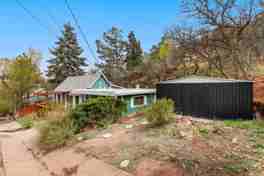 One-of-a-kind Manitou Springs home full of character, tucked against a natural rock hillside with the mountains as your backdrop. This charming property features warm knotty pine wood paneling throughout the spacious living and dining areas, hardwood floors, beamed ceilings, and a unique upper loft, perfect for a home office, studio, or extra sleeping space.