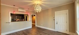 Beautiful apartment in a revitalized historic building. The large living room shares a breakfast bar with a well appointed kitchen- which is complete with granite countertops, stainless steel appliances, dishwasher, soft-close cabinetry, French door refrigerator, and separate dining area featuring exposed brick. The full bathroom provides ample cabinets, a spacious vanity, deep soaking tub, and even a laundry closet complete with washer & dryer! The central hallway features two spacious closets, and leads to the good-sized bedroom with more exposed brick and the door to an incredible private covered deck overlooking the Chemung River. Off-street parking is available in our parking lot across the street. Tenant pays $1395 rent per month plus their own electric and internet. Heating and cooling in this unit are both electric. We pay the water, sewer, and trash collection.