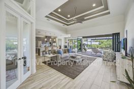 Magnificent estate home featuring 3 bedrooms plus an office, 2 bathrooms, and 2,043 square feet of living area, complete with a 3-car garage. The kitchen, living room, and dining room seamlessly blend with the serene backdrop of the Myakka River, providing quick access to Charlotte Harbor and a leisurely 30-minute boat journey to the Gulf.