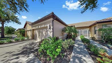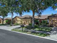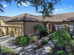 AVAILABLE NOW. Rent includes water and ground maintenance. Welcome to 55+ Resort-Style Living in this Del Webb gated community. Charming Front Entry 2-bedroom, 2-bath Villa with a den/study (optional 3rd bedroom) provides comfort, privacy, and an ideal open layout for both relaxing and entertaining. The home features no carpet - tile and wood flooring throughout, with newly updated flooring in the bedrooms and den. The split floor plan ensures privacy, while the open concept kitchen, dining, and great room seamlessly connect to the screened-in lanai, creating the perfect indoor/outdoor Florida lifestyle. The spacious eat-in kitchen offers abundant cabinets, counter space, and a brand-new stainless steel deep farm sink with a commercial faucet ideal for any home chef. The garage includes built-in cabinets, a utility sink, and a freshly painted floor for easy maintenance and organization. A water softener system is also included. Southshore Falls residents enjoy 24-hour gated security and an impressive 14,000 sq. ft. clubhouse with multiple pools, fitness center, pickleball, tennis, bocce, internet café, walking trails, and social clubs galore. This home is walking distance to one of the community pools and the lagoon dock, perfect for enjoying peaceful Florida evenings outdoors. Close to shopping, dining, and Tampa Bay & Sarasota attractions including the country's most beautiful Beaches! Pets accepted with landlord approval. Furnished or unfurnished. Minimum 6 month lease.