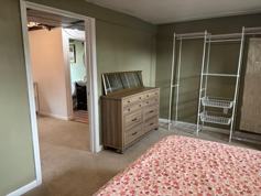 This is a room at the lower level of a raised ranch style house with a private entrance. The room has a queen size bed, 2 bedside drawers, dresser mirror and a study desk. Also at the lower level are the following areas available to guess: Laundry area, 1/2 bath, dinette area with a toaster oven, a microwave and a small refrigerator. The tenant will have access to a full bathroom located upstairs for shower purposes only. No access to a full kitchen.