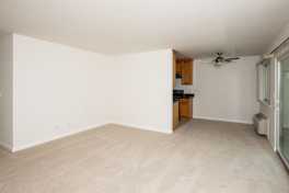 Upstairs unit with fresh paint, new flooring and updated kitchen. Spacious living room with patio access. Separate dining area. Updated kitchen with granite counters and new dishwasher. Two good size bedrooms. Bathroom with shower over tub. Large private balcony. Unit includes one covered parking space and permit for one additional space. Storage closet in parking area. Central laundry facility. One year lease.