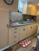 Large basement apartment 1 bedroom (full sized bed) with extra single bed in family room, office desking area, family room, TV’s in both bedroom and family room. Naturally cool in temperature. Nice size kitchen with dining room table. Lots of space to spread out. Shared washer & dryer. Double door secured entry