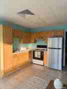 This freshly painted one-bedroom, one-bathroom unit offers a clean and comfortable living space. The kitchen features standard cabinets, a stainless steel refrigerator, and a dated stove. The unit is equipped with window-unit air conditioning for cooling. A practical layout and recent paint refresh make this a well-maintained and functional apartment.