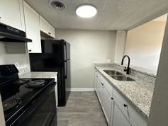 Our spacious, 2-bedroom 1.5-bathroom townhouse-style units feature modern essentials such as a refrigerator and electric range stove. Our units vary in style - showcasing carpeted and LVP vinyl flooring, and black appliances.