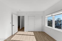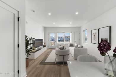 Unit 101 is a 1-bedroom, 1-bath ground-floor residence featuring 11' ceilings, a private patio, and an open-concept layout. The kitchen includes custom cabinetry, quartz countertops, stainless steel appliances, and an in-unit washer/dryer. The kitchen area opens to a private patio, perfect for relaxing and enjoying morning coffee. Building amenities include a fitness center, co-working space, and rooftop deck with ocean and area views plus a covered pergola lounge. Additional features include two assigned parking spaces, EV charging stations, secure video intercom entry, package room, bicycle storage, and optional climate-controlled storage. Located in the heart of Long Branch, close to beaches, dining, shopping, and year-round entertainment.