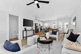 This brand-new 3 bedroom and 2.5 bathroom townhome offers plenty of space, featuring a two-car garage, a downstairs office area, and plenty of storage throughout. The kitchen serves as the centerpiece, complete with stainless steel appliances, a gas range, quartz countertops, a central island, and a breakfast bar that opens to the dining area and living areas which makes the perfect space for cooking and entertaining. The main level is bright and open, with ceiling fans throughout for added comfort.