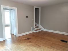 Nicely renovated two-story apartment on the second and third floor. Three bedrooms, kitchen, living area, and bathroom. Updated kitchen appliances, and countertops. LVP floor in kitchen and refinished hardwood floors throughout the rest of the apartment. This unit has on-street parking. Heating is provided by a gas furnace and the unit does have central air.