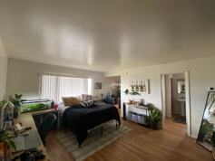 Light & airy upstairs studio. Ample floorplan, updated kitchen and vinyl flooring through out. Electric stove and fridge provided. Water, trash and basic cable included. Lush gardens setting. Assigned carport parking. On-site laundry.