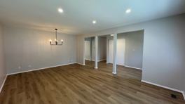 -Spacious living room, dining room, family room with wood-burning fireplace.
