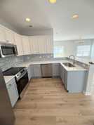 Step inside to an open-concept floor plan filled with abundant natural light and enhanced by fresh, beach-inspired paint colors, updated light fixtures, and durable LVP flooring throughout. The spacious kitchen is a standout feature, boasting top-of-the-line stainless steel appliances, granite countertops, ample cabinet space, and a breakfast bar that flows seamlessly into the dining and living areas.