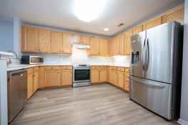 The kitchen comes fully equipped with refrigerator, oven/stove, dishwasher, and microwave, along with ample cabinet and counter space for everyday living. A washer and dryer are also included for added convenience.