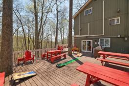 Spacious and versatile 5-bedroom, 2-bathroom rental located in the desirable Saw Creek Estates community! This well-maintained home offers the perfect blend of comfort, functionality, and year-round enjoyment. With a newer roof installed in 2020, the property features an outdoor hot tub, a generous deck ideal for entertaining, shed storage, an outdoor cooking station, and a large screened porch for relaxing in any season. Inside, enjoy the convenience of an efficient split AC/heating system, two kitchens for added flexibility, an expansive family room, and a dedicated game room area--perfect for gatherings or extended living arrangements. The primary bedroom boasts its own private balcony, creating a peaceful retreat, while the wood-burning fireplace and exposed beam ceilings add warmth and rustic charm throughout the home. Stainless steel appliances complete the modern touches. Nestled in a vibrant four-season community, residents enjoy access to an impressive array of amenities including indoor and outdoor tennis courts, a private beach area, fishing spots, boat rentals, racquetball, basketball courts, baseball fields, playgrounds, and seasonal ice skating. Don't miss this incredible rental opportunity--schedule your private viewing today and start making unforgettable memories!