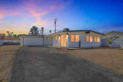 Amazing 3 bedroom, 1.5 bathroom house in Joshua Tree with 1,187 sq ft and plenty of outdoor areas featuring beautiful mountain views, a playroom and a wood-burning fireplace. This charming home offers ample space for families or guests. Modern amenities included: central air, central heat, stainless steel appliances, updated kitchen, updated bathroom, updated laundry and garage with storage, a fenced yard. The main bedroom has its own half bath and a doorway to an additional playroom. Nestled in the picturesque Joshua Tree, it's close to local attractions, parks and more. This property offers a peaceful retreat in the heart of the desert. No utilities are included. Date Available: May 1st 2026. One month security deposit required. A maximum of 2 pets are allowed at the discretion of homeowner. Please submit the form on this page or contact Milenka at 949-537-6648 to learn more.