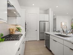 2-bedroom, 2-bathroom house built by Toll Brothers in 2025. Open floor plan with an attached 2-car garage. The gourmet kitchen makes a statement with its premium finishes, such as undercabinet lighting, upgraded white flat-panel cabinets, a full-height 2x9 greige glossy tile backsplash, and stainless steel appliances, including a 5-burner gas cooktop. The great room is the perfect setting for relaxation with its cozy fireplace with light gray, full-height 12x24 tile and ample natural light. The rear backyard is landscaped and fenced.