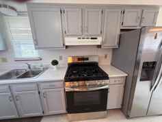 Inside, you'll find fresh updates throughout, including updated flooring, paint, and fixtures. The home features a bright kitchen with stainless steel appliances, ample cabinet space, and a gas range. The open living area provides a comfortable space to relax, while the bedroom offers a quiet retreat.