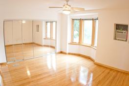 Huge master bedroom (14.5” x12.5”) with bay windows, semi en suite and entire wall (12.5’) of closet space