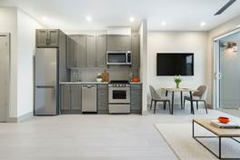 This elegant 430 sq. ft. studio apartment offers a seamless blend of comfort and modern design.