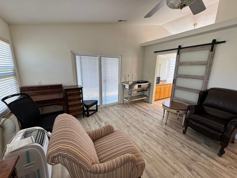 Private Entrance: With motion-activated porch lights & double patio doors (with mini-blinds in between).