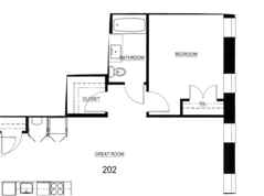 Apartment 202 is a spacious one bedroom unit facing Crown Street with great natural light through the over sized windows, 660 square feet. This residence has 15' ceilings, over sized windows with custom window treatments, historic hardwood floors with beautiful dark stain, Blomberg stainless steel range, refrigerator, dishwasher and microwave, in unit washer/dryer, and abundant storage including walk in closet in bedroom and closet in hallway.