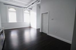 Apt 203 is light, bright and airy with 15 foot ceilings, oversized windows with custom window treatments, historic hardwood floors with beautiful dark stain, Blomberg stainless steel range, refrigerator, dishwasher and microwave, in unit washer/dryer, and abundant closet storage.