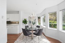 Experience an impeccably maintained, garden-level residence on the main floor spanning 1362 sq. ft with two bedrooms and two bathrooms. Sunlight pours in through expansive windows and the thoughtfully designed layout places bedrooms on opposite sides to enhance privacy. The spacious kitchen is perfect for casual meals and a dedicated work area offers tranquil views of lush, landscaped greenery. Step outside onto the generous, south-facing patio for relaxing afternoons. The primary bedroom includes a luxurious ensuite with heated flooring and a built-in bench for comfort. This home boasts a rare laundry room and convenient storage space right on the same floor. Enjoy quick access to Parkgate Plaza, the local library, community facilities and schools. Only cats are welcome in this warm, welcoming, and tight-knit community. With patio homes in pristine shape like this being scarce, don’t miss the chance to make it yours.