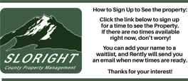 DO NOT DISTURB CURRENT TENANTS. DOING SO WILL PROHIBIT YOU FROM RENTING THE PROPERTY. You must view the property with a SLORIGHT associate.