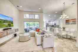 Elegantly updated home in the highly sought after gated community of Eagleton Lakes at PGA National. This impeccable home features a new kitchen and 3 new bathrooms! The home offers an open, floor plan with vaulted ceilings and abundant natural light. Upgrades include a brand-new kitchen with custom cabinetry, quartz countertops, stainless-steel appliances, wine cooler, renovated baths, new flooring, and freshly painted interior and exterior. The split-bedroom layout provides privacy, and the spacious primary suite features a lovely seating area and access to the screened patio overlooking a private backyard, perfect for quiet relaxation or entertaining. Located in prestigious PGA National, residents enjoy the security of a gated community.