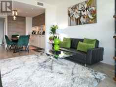 Impeccably stylish, fully-furnished bright northwest-facing unit with central A/C, gourmet kitchen, large balcony, accessible parking, in-suite laundry, gas stove, dishwasher, and more.