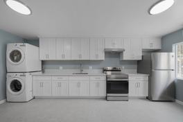 Single-story residence showcases a designer-inspired kitchen with expansive countertops, abundant custom cabinetry, and a sleek, modern aesthetic ideal for entertaining or unwinding after a productive day. Homes are fully appointed with brand-new stainless steel appliances, tankless water heater and mini-split A/C and heating system, blending luxury with everyday convenience.