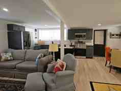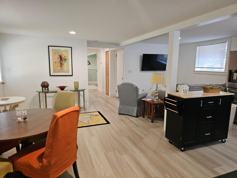 Completely renovated ground-floor unit. Fully furnished, all utilities and heat included. Minimum rental is at least 1 month. Unit has full kitchen with granite countertops, washer and dryer, shower in the bath (no tub) and one large bedroom opening into a fenced back yard. Shared with one other tenant on upper floor. Quiet neighborhood close to everything.