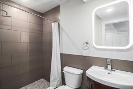 A spacious two-floor apartment that is ideal for families or roommates. The first floor has an open-concept living and dining area with 9-foot ceilings and hardwood floors. The kitchen features stainless steel appliances (dishwasher, microwave, fridge with freezer/icemaker), quartz countertops, ample cabinet space, and a kitchen island that can seat four. Two nice-sized bedrooms with closets reside on this floor. The finished basement with tiled floors contains an open space as large as the floor above and houses the other two bedrooms with large closets. The basement could be used as a home gym, a media room, a play area, or a home office. The unit has a full-size washer and dryer and a Nest thermostat, allowing you to control the temperature and save on energy costs. The unit's intercom system allows you to see who's at the front door of the building and buzz them in. There is also a private second entrance to the unit. There is a private backyard perfect for barbecues, gardening, or simply relaxing in the open air. This unit is on the ground floor of a quiet, well-maintained building with only two other apartments in the building. This property is close to public transportation, which goes north and south (17 Bus), east and west (29 & 79 Bus), and is a 10-minute walk to the Synder subway station. Pets are allowed (pet rent and deposit required)