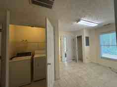 The interior showcases a tasteful combination of hardwood flooring, soft carpeting, and tile, creating a warm and inviting atmosphere throughout. The kitchen comes fully equipped with modern conveniences, including a dishwasher, refrigerator, and stove, with washer and dryer add everyday ease to your lifestyle.