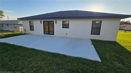 Step into this remarkable new construction rental where modern elegance meets everyday comfort. A striking frosted glass front door welcomes you into a bright, luxurious interior finished with large-format, high-gloss white marble-look tile that flows seamlessly throughout the entire home. The open, split floor plan creates an airy feel, offering plenty of space to relax or entertain. At the heart of the home, the kitchen is designed to impress with a stunning white quartz island featuring waterfall edges on both sides, a built-in recessed power outlet, and space for bar seating. You'll love the abundant lighting, generous counter space, and the sink perfectly positioned to overlook the backyard and oversized patio (32x14)-ideal for enjoying Florida living. The bedrooms are comfortably sized, while the primary suite offers a private retreat with a beautifully designed bathroom. Enjoy a spacious walk-in shower with a custom glass enclosure and tile that extends to the ceiling, along with an 8' x 6' walk-in closet for ample storage. For added convenience, the home includes a washer and dryer located in the garage. With its sleek finishes, thoughtful layout, and move-in-ready appeal, this home is a standout rental opportunity-schedule your showing today.