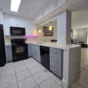 Gorgeous remodeled 2BR/2BA condo on 3rd flr in sought-after West Plantation. This light & bright unit features a sleek, remodeled kitchen/bathrooms w/modern cabinetry, quartz countertops & glamorous lighting fixtures. Kitchen has waterfall feature, pantry, plentiful cabinet space, stunning pendant lights & rotating colored LED under-cabinet neon lighting. Split-bedroom floor plan offers privacy & spacious rooms and closets. Contemporary privacy blinds & wood laminate floors throughout. Stackable washer/dryer in entry closet. Cheerful view of pool/tennis courts from lrge screened patio w/access from living area & lrgr bedroom. Well-maintained community with resort-style amenities + playground. Conveniently located near shopping, dining, hospitals, universities, airport & highways.