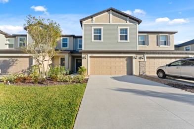 Absolutely stunning 3 BR /2.5 Bath / 2 Car Garage + LOFT townhome in ultra-modern and green-focused New Community of Angeline! ALL the best upgrades and conveniences. This is the LARGE (2319 SF!) floor plan home which includes a large upstairs LOFT/media/office/gym area. Every year home design continues to improve and expand on the features and amenities modern buyers want, and this home epitomizes that progress. Intelligent design features like a large open and bright kitchen designed to entertain w/ a walk-in kitchen pantry, a truly beautiful oversized quartz island/breakfast bar, surrounded by classic solid white cabinetry with premium bright white quartz countertops. Featuring GE® stainless steel appliance package. Everything you could want in a "chefs dream kitchen". Upstairs is the master suite with a bedroom-sized GIANT WALK-IN CLOSET and ensuite bathroom that is AMAZING! With a double vanity/his & her sinks, a garden soaking tub, with separate walk-in shower w/ subway tile, all designed to feel like a spa-like retreat within your own home. Washer and dryer are included, with an upstairs laundry room. Lawn Care & High speed (200/200 Mbps) internet included. The outdoor covered lanai has views of the conservation area. Angeline is a brand new community and a wonderful place to live, with sprawling green spaces spanning 3,600 acres, and a serene freshwater lagoon offering beachfront activities. Outdoor enthusiasts will be thrilled with over 100 miles of trails suitable for walking, jogging, or biking. Great schools including a brand-new ANGELINE STEM SCHOOL OF INNOVATION, plus a brand new gorgeous community pool, clubhouse, and community farm, With easy access to FL-State Road 52, 589, and Interstate 75 making shopping and commuting a breeze. Apply today!