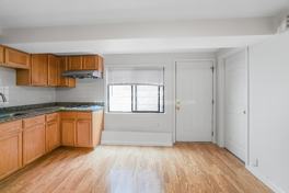 Recently updated two bedroom garden apartment with efficiency kitchen, one full bathroom, living room, and shared laundry. Located towards the back of the building.