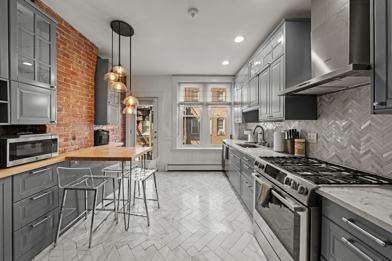 Sun-drenched two-bedroom with in-unit laundry on coveted Cortes Street in Bay Village. Updated brownstone living on the second floor: southern light, soaring ceilings, oversized bay windows and restored hardwoods meld historic charm with modern systems. The showpiece kitchen features custom cabinetry, chevron stone tile, pendant lighting, full-size stainless appliances and a butcher-block breakfast bar perfect for casual meals or entertaining. Bedrooms are thoughtfully separated for privacy: a generous primary with abundant closet space and a second bedroom with a walk-in and built-ins. Fully renovated bathroom with generous vanity storage and chrome fixtures. Building amenities include additional laundry for large loads, freshly updated common areas and a stunning shared roof deck with sweeping city views ideal for morning coffee or evening gatherings. Prime location steps to South End dining, Back Bay shopping and the Theater District, with easy MBTA access. Video Tour Available!