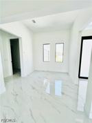 Brand-new construction completed in 2026, this beautifully designed residence offers 3 bedrooms, 3 full bathrooms, and a versatile flex space ideal for a home office, playroom, or additional living area. The open-concept layout showcases modern architectural design throughout, featuring sleek finishes, European-style cabinetry, and thoughtfully curated details that elevate everyday living. The kitchen is equipped with stainless steel appliances, modern countertops, and a built-in wine cooler-perfect for both daily use and entertaining. The spacious primary suite offers a spa-like experience with a walk-in shower, soaking tub, and dual walk-in closets, providing both comfort and functionality. Ample storage is found throughout the home. Enjoy indoor-outdoor living with a covered lanai overlooking a peaceful canal view, creating the perfect setting to relax or entertain. The property also features professionally designed front landscaping that enhances its curb appeal. Connected to city utilities and ideally located just minutes from a commercial plaza with Publix, dining, and everyday conveniences. With direct access to Del Prado Blvd, this home offers an easy commute to schools, work, and entertainment throughout the area.