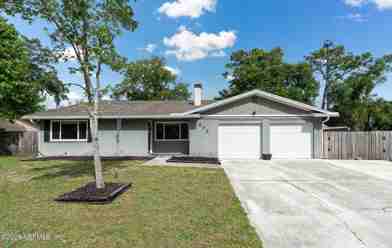 Located at 972 Dostie Circle, this updated 3-bedroom, 2-bathroom brick home with a 2-car garage offers a blend of character and modern finishes. The interior features luxury vinyl plank flooring throughout the main living areas and a striking brick fireplace that spans the dining room wall, creating a warm and inviting focal point. The kitchen has been updated with granite countertops and stainless steel appliances, while both bathrooms have been thoughtfully renovated. An oversized mudroom provides additional functionality and storage, conveniently located just off the large covered lanai. Step outside to a spacious, fully fenced backyard with a double gate, offering flexibility for additional parking or storage. With no HOA, this property provides added convenience and fewer restrictions. Conveniently located near shopping, dining, and major roadways.