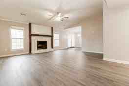 Inside, LVP flooring welcomes you into the living room, creating a durable and inviting main living space. The kitchen features tile flooring, upper and lower cabinetry, a subway tile backsplash, and a breakfast nook, providing a comfortable setup for daily meals and gatherings.