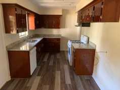 Brick home with single carport, kitchen includes dishwasher, and gas range, vinyl plank flooring throughout, private backyard, storage shed, located near USA campus.
