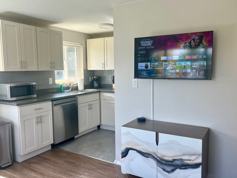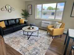 Step inside to discover a bright, open layout filled with natural light, featuring luxury vinyl plank flooring, fresh paint, and a designer kitchen outfitted with quartz countertops, stainless steel appliances, and a dishwasher. The renovated bathroom, central A/C, and secure digital locks ensure you're comfortable and at ease year-round.