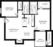 Our renovated one and two-bedroom apartment homes feature kitchens with all-black appliances, white cabinetry, designer hardware and tiled backsplashes, wood-style floors, separate dining areas, and expansive bedrooms with walk-in closets