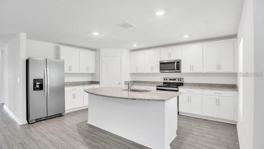 Welcome to 12958 Del Lago Dr in Astatula, a beautifully maintained 5 bedroom, 3 bathroom home situated on an impressive 0.6 acre lot with no rear neighbors, offering privacy and peaceful views. This home combines space, comfort, and modern finishes in a serene setting near Lake Harris, perfect for boating and outdoor enthusiasts. Step inside to a bright open-concept layout featuring a spacious family and dining area designed for entertaining. The kitchen is the heart of the home, showcasing Whirlpool® appliances, expansive granite countertops, and elegant 36-inch upper cabinets with crown molding, providing both style and functionality. The primary suite offers a relaxing retreat with a large walk-in closet and a double-sink vanity in the en-suite bath. Additional bedrooms provide flexibility for guests, a home office, or multi-generational living. Enjoy Florida living on the covered back patio overlooking the expansive backyard. Located just 20 minutes from the Florida Turnpike and close to Lake Harris, this home offers easy access to major roadways while maintaining a quiet, spacious lifestyle The home also includes an attached two-car garage and a fully landscaped front yard.