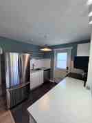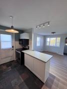 Inside, the bright open-concept layout features an efficient kitchen with fridge, stove and dishwasher, a sun-filled living room & bright dining area. This living space also has some amazing characteristics such as exposed beams & large windows allowing for plenty of natural light ,creating an inviting space that instantly feels like home.