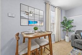 The space is bright, thoughtfully furnished, and set up for comfort during longer stays. The bedroom features a queen bed, soft linens, and storage for extended visits, while the living area includes a queen sofa sleeper and dining/work area. Conveniently located near Northside Hospital Gwinnett, Lawrenceville Arts Center, Gas South Arena, Coolray Field, Sugarloaf Mills, and local parks.