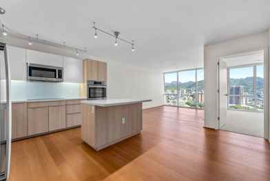 Enjoy breathtaking mountain views from this immaculately maintained 1 bedroom/1 bath unit with 1 covered parking stall in the highly desirable Symphony Honolulu. This bright unit features engineered hardwood flooring, a modern open-concept layout, and floor-to-ceiling windows that flood the space with natural light. Symphony offers resort-style amenities including front desk service, a heated pool & whirlpool spa, BBQ areas, fitness center, private movie theater, recreation spaces, security, and more.